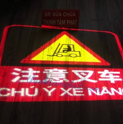 Sản phẩm đèn cảnh báo xe nâng có đèn chiếu logo xuống đường: